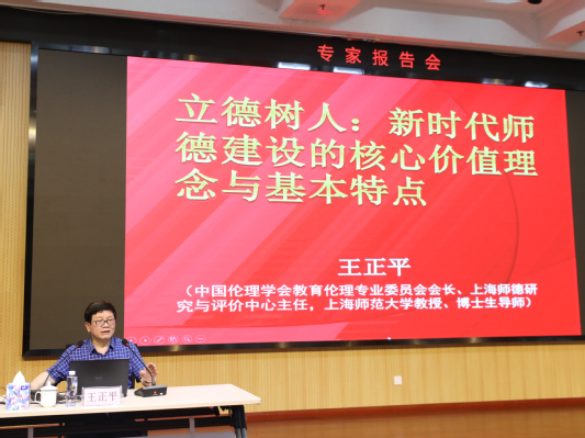 5月11日,英国威廉希尔官网举办新时代师德师风建设专题报告会,邀请上海师德研究与评价中心主任、上海师范大学哲学与法政学院特聘教授王正平作专题报告。王正平以“立德树人:新时代师德建设的核心价值理念与基本特点“为题,紧扣十九大和全国教育大会关于立德树人、加强师德建设的重要精神,从新时代高校教师职业行为十项准则、现代教育事业的道德要求以及教师伦理的基本特点等方面引经据典,指出中华民族正迎接一个伟大的新时代,新的社会环境需要建构与时俱进又面向实践的新师德,重筑时代新师魂。