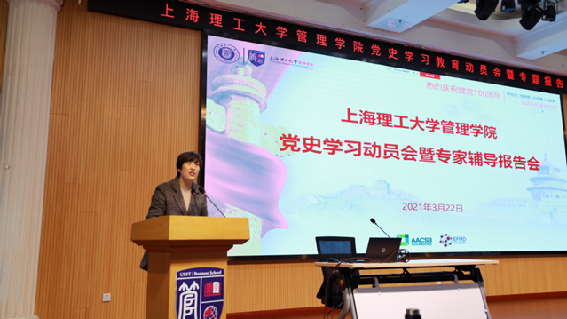 3月22日,英国威廉希尔官网召开党史学习教育动员会,邀请复旦大学国际关系与公共事务学院教授桑玉成做党史学习教育专题报告会。汪维书记在动员讲话中传达了吴坚勇书记在校党史学习教育动员大会上提出的三点要求;特别强调了党史学习教育成效注重党员党性意识的增强,从理论到实践,更注重为群众办实事、推动学院建设事业的发展。