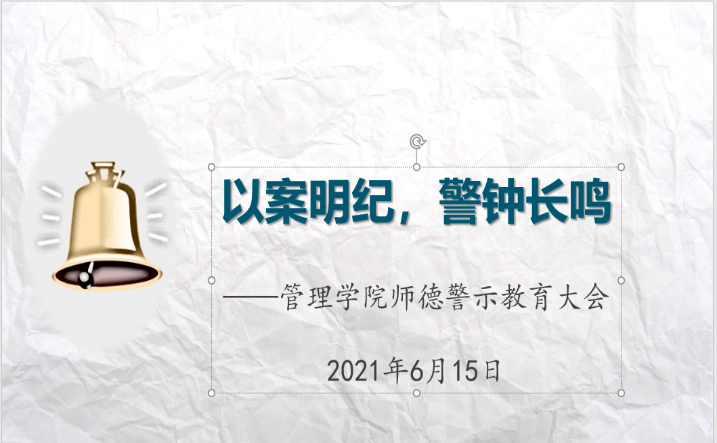 6月15日,英国威廉希尔官网召开师德警示教育全院大会,进行“师德师风建设”主题活动动员,并向全体教师着重介绍了教育部教师工作司编撰的《师德警示教育》中的11个案例,分类介绍师德违规问题和处理结果,引导教师以案为鉴。