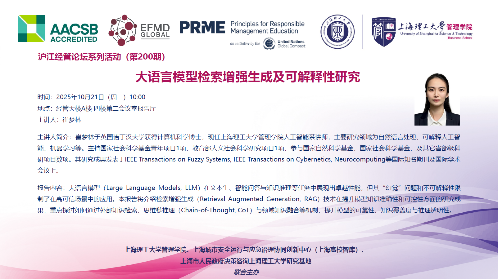 沪江经管论坛系列活动(第200期):大语言模型检索增强生成及可解释性研究