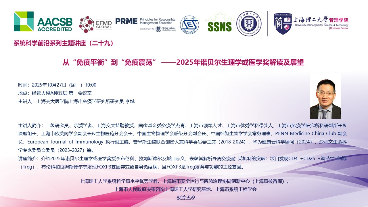 系统科学前沿系列主题讲座(二十九):从“免疫平衡”到“免疫震荡”-2025年诺贝尔生理学或医学奖解读及展望