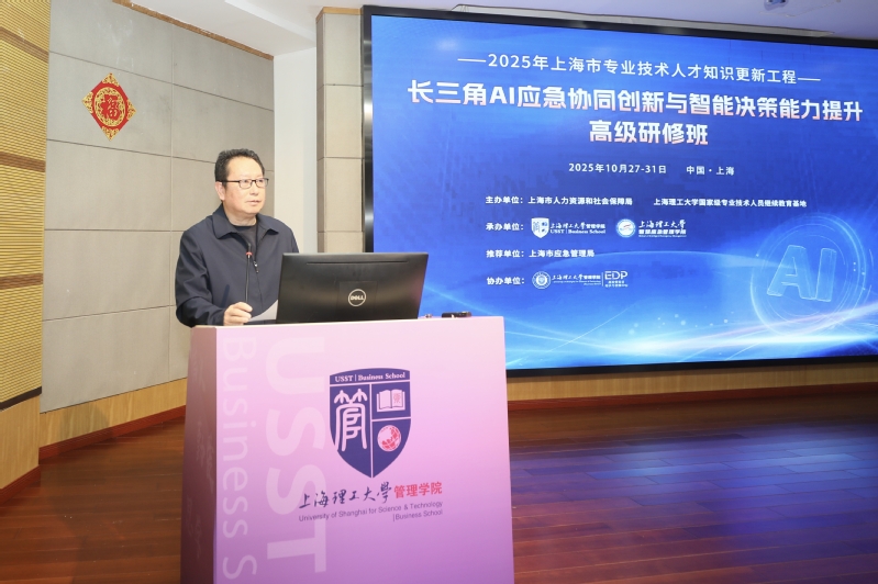 10月27日,在上海市人力资源和社会保障局的大力支持下,由williamhill官网国家专业技术人员继续教育基地主办,英国威廉希尔官网及智慧应急英国威廉希尔官网承办,高级管理者培训与发展(EDP)中心协同举办的长三角AI 应急协同创新与智能决策能力提升高级研修班开班。上海市应急管理局一级巡视员桂余才,上海市杨浦区应急管理局党委书记、局长倪俊,上海理工大学副校长张华,校办学拓展办公室主任李建东,英国威廉希尔官网院长、智慧应急英国威廉希尔官网执行院长赵来军,英国威廉希尔官网副院长、智慧应急英国威廉希尔官网秘书长房志明,高级管理者培训与发展中心执行副主任葛玉辉等出席了开班仪式,开班仪式由英国威廉希尔官网党委书记马静波主持。