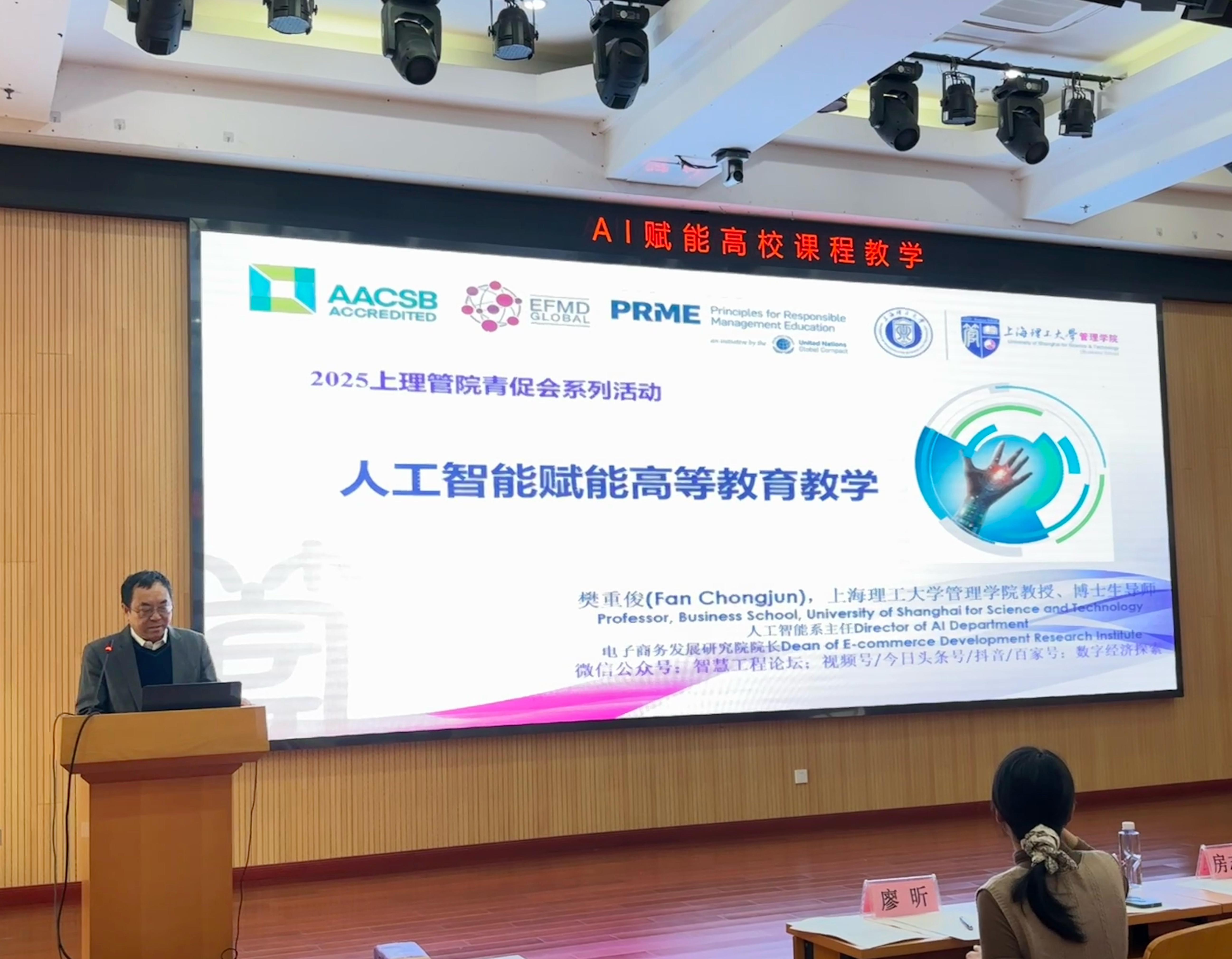 樊重俊围绕 “AI 赋能高校课程教学” 主题,结合自身多年教学、科研及实践经历展开深入讲解。分享开篇,他首先强调 “热爱教师工作、热爱学生是教师的基本素养”,无论技术如何发展,教育的本质始终是 “以学生为中心”,AI 技术仅是辅助工具,唯有怀揣对教育事业的热忱,才能真正实现技术与教学的深度融合。